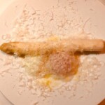 そのピュアな味わいは、サルデーニャにいらしたシェフの一皿「金目鯛のマリネ」(レア)とフレッシュにマリエージュ