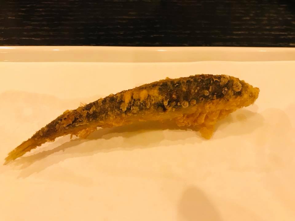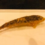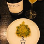 油の中で極限まで水分を飛ばして揚げられた「キス」のミネラルが、熟成してなお爽やかさを残すビアンコと絶妙にマリエージュ。ほんのりと感じられる柚子の香りは和と伊の融合。