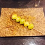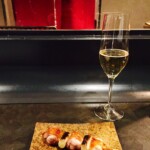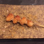 合わせる「とりの」さんの串は、比内地鶏の素材を生かし、焼き加減、塩、炭などこだわりぬいた逸品。各国より選りすぐりの岩塩を使った塩には泡やローヌブレンドの白、秘伝のタレにはピノノワール(Magnum bottle)やシラーが寄り添い、みなさん笑顔に♪