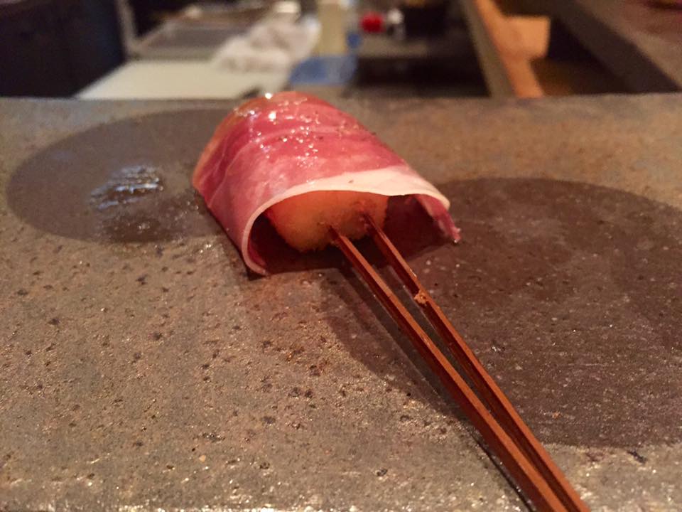 昨年訪問しましたシャンパーニュ、パスカルドケのロゼで乾杯した後は「竹の子」「ホタルイカ」など店主の技が光る旬の串揚げとのマリエージュをお楽しみいただきました。