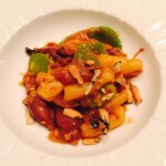 岡野シェフの繊細なお料理に寄り添うソムリエ久慈さんセレクトのワインたち。