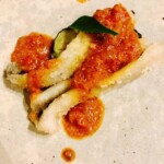 そして、私がモルドバで落ちたエレガントな白ワイン「Et Cetera」は穴子のフリットとオイリーなペアリング。