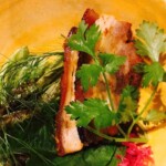 岩崎さんお勧めの赤ワイン「Equinox」のメルロは、豚のローストの炭焼きの香り、甘やかなソースと調和して昨夜の一番人気の組合せとなりました。また、旬の秋刀魚の生春巻きは、KONDOヴィンヤードのタプ・コプ農場から造られるオレンジワインを思わせる外観の白ワイン(6種のブレンド)の複雑なアロマに寄り添いました。 ラストは、Grape Republicと蟹のフォー。お出汁が香り立つマリエージュとなりました。